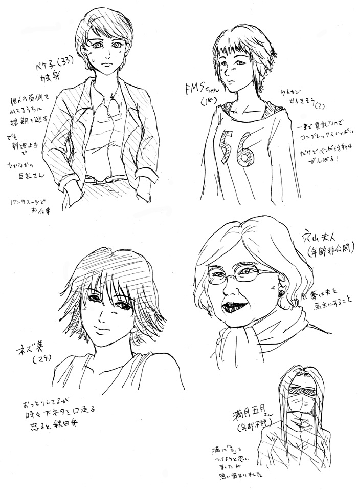 にょた バドです。 匿名希望さんから リクエストなのですが、今回変幻六花編でノヴシゲが女体化したのを見て他のメンバーが性転換したらどうなるのかなあ…と。是非バドさんの絵で拝見したく…! というリクエストを頂きました。 ・・・・・・その考えはなかった(゚∀゚;) というわけでちょっと女性バージョン描いてみました。 本当にささっと描きですみません。 そのうちもっとちゃんとマンガとかイラストとかも描きたいです。 ちなみに、一磋に関しては女性化したときのイメージは海清さんの外見かなあ…と思ったのでパス、Xくんも顔はあのままで付いてるもんが無くなるだけのイメージなのでパスさせて頂きました。 申し訳ありません(´・ω・`) 画像クリックで大きくなります。 こんな感じで大丈夫でしょうか……('A`;)? 満月さんは性別不詳なはずなのですが男性イメージの方が強そうなのでオマケで描きました。 変幻六花のノヴシゲは髪まで伸びちゃったのですが、今回は一応元の髪型の雰囲気を残してみました。 女性キャラの男性化バージョンもあった方が良かったですかね? まつ香さんが男性化して三十路着物男子(死んだ妻との間に息子有り)設定になったら私がかなり喜びそうです。 PR