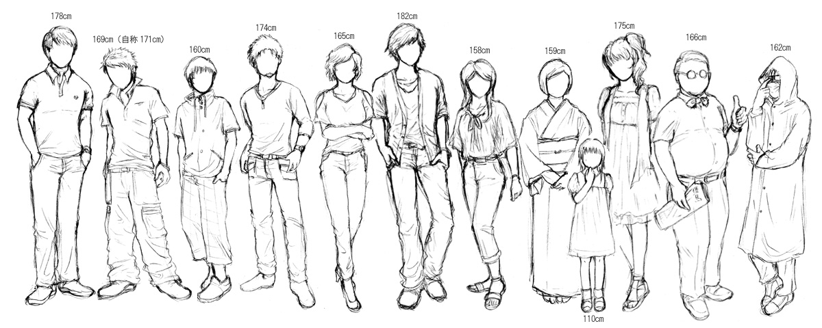 各キャラを描く時のポイント バドです。 名無しさんより >各キャラのイラストを描く上で意識すべきポイントなどはありますでしょうか…。 というご質問がありましたのでお答えします。 ひっそりとはおっしゃっていましたが描いて頂けて嬉しいです(´∀`) とはいえ結構適当だったし私も全然絵柄が安定しないので、今後自分が描くときのまとめのつもりで書きますね! あと立ち絵ではわからないボトム系の色を。 ネズ...愚腐弟に「立ち絵もっとイケメンに描けないのか!」と言われたくらいなのでとにかくイケメンに('A`;) 服はカーディガン含めて3枚着てるように見えますがレイヤード風シャツを着てるだけで2枚です。 下はインディゴデニム。 キリコ...知的な顔立ちに。 上着は私の絵がアレなのでそうは見えないですがシフォン素材で軽め。 愚腐弟から「立ち絵のシルエットがち◯こみたい」と言われたので、髪型はち◯このラインを意識してみて下さい。 パンツはロールアップしたチノパン(ベージュ系?)。 一磋...顎やエラをしっかりめに濃い太眉とあごヒゲ。目はちょい釣り目。 EXILEにいそうなワイルド系にと思ったらいつの間にかそっち系な感じになってしまいました。だいたい前作シノビ編のせい(´・ω・` ) 美容師なので別にムキムキである必要は無いと思っていますが、そっちモードでネタにする時はムキムキでお願いします。 下は黒デニム。 海清...一磋も共にパーツがしっかりした濃いめの顔立ち。やや釣り目。 一応双子なのにあんまり似てないですが、髪色は一磋とお揃いにしてます。 シャツは全身絵見てもらったらわかる(?)と思いますが、肩に縦に切り込みが入った変型シャツです。 下はライトブルーデニム。 ペケ蔵...ナチュラル眉毛にパッチリめの目。 服には無頓着なので普通の紺ポロシャツとサンドベージュっぽいストレートパンツ。 髪色はやや焦げ茶めですが地毛設定です。 一磋がそっちモードじゃない場合は実は一番いい体(柔道体型)してる。 前作ペケ蔵は爽やかお兄さんっぽくてもいいですが今作ペケ蔵を描く時はほどよくやつれさせて下さい(痩せてるわけでなくやつれてる)。年が年だし何気に喫煙者だしね(´・ω・` ) FMS...前も書きましたが一重垂れ目。細めの眉でやや面長。 ポロシャツとシャツの重ね着で下はゆるめカーゴパンツ。 いっぱいピアスやイヤーカフしてますが、実は立ち絵作った後に「男性の右耳ピアスはゲイアピール」という話を知りました...。ごめんFMS('A`;) 修正しようにも左耳ないじゃん!!でもピアス付けてる感は出したかったのでそのままにしてしまいました。決してわざとではありません。 なのでFMSがゲイではないと思う方は左耳に、ゲイだと思う人は右耳にいっぱいピアス付けて描くといいかもしれませんね(゚∀゚) ユリカ...キリコが美人系、海清さんがお姉様系ならユリカちゃんは可愛い系に。 背が高い以外は全体的にガーリーな可愛らしい雰囲気(にしたい...)。 髪型が前作と変わってしまいましたがぱっつん前髪だけそのまま。 ワンピースなので下は素足。 X...黒目がちなパッチリ目。 半袖パーカーですがあざとさを出したかったのでハイネックになりました。カラーは例の乳首色の明度を上げて下さい。 下は7部丈のパンツですが柄は黒地に白いラインだけが入ったブロックチェックみたいなのでイメージしてました。明確にはしてないのでとりあえず大きめのチェック柄で。 穴山...井崎脩五郎氏をぽっちゃりさせた感じに描いただけなので、きっとそれだけで穴山さんになります。 下はグレーのタックパンツ。 満月五郎...ナイロンのフード付きコートにサージカルマスクとサングラス。特徴的なのできっと描きやすいと思います。 実はフードのシワの感じをみたかったので愚腐弟にレインコート着せてマスクさせたのを模写しましたww まつ香...ちょっと奥二重気味のクールな目。 帯は生成系でお太鼓にしてます。帯締めと帯揚げは江戸紫色。足袋も半衿と同じような色のカラー足袋。白は汚れが目立つので普段から着物で掃除などしてるまつ香さんはあまり白は履かないと思います。 髪色はペケ蔵と同じ色にしてますが異変怪道編以外では姉弟設定は特に引き継いでないです。 きく香...膝丈小花柄ワンピース。髪の毛は胸くらいまで。くりくり目と猫口。にゃんこ。 こ、こんな感じで大丈夫でしょうか(´・ω・`;)? もっと具体的に「このキャラのここはどうなってるの?」とかあったら遠慮なくお問い合わせください。 あと前に貼った愚腐弟が適当に決めた身長表もまた貼っておきますね。 並べるつもりでそれぞれ描いたわけじゃないので頭身とかのバランスがアレですが…。 靴の色はほぼ決めてない……決めた方がいいかな? 身長表に軽く色付けて公開した方がいいのかもしれませんね…。 あともし小説などで書かれる方がいらっしゃったら一人称だけ気を付けて頂ければと思います。 PR