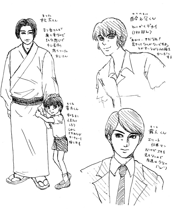 男体化&各キャラ誕生日など インフルA型から復帰しました、バドです。 2、3年前にかかったのはB型だったので2タイプ目です(´Д`) 職場環境を考えるとかかりやすいのは仕方ないんですけど、大人になってから熱が上がるとしんどいですね…。 しかも一週間経つのに未だに諸症状が残っていて今日も病院に行ってきた次第です。 さて、そんなこんなでまだ全快までにはいかないのですがお約束(?)の男体化ざっと描きです。 例によって海清さんはパスですすみません(´∀`;) 前回もキャラの元の髪型をなんとなく残したのですが、今回は前髪とユリカちゃんのもみあげだけ残しました。 もみあげ残すとなんとなく80年代アニメキャラっぽい…? インフルで休んでる間に、前にちらっと書いた「女装と日本人」という本を読み切ったのですが、日本人は異性装に性別を超越した神性のようなものを感じていたんじゃないかということが書いてありました。 こういう風に性別転換して楽しむのも日本人ならではなんですかね。 異性装や同性愛はダメ、気持ち悪い、みたいな風潮は近代以降にキリスト教的な概念が入ってきたから広まったもので、本来アジアは割とそういうことは緩かったということでした。 日本やタイでニューハーフが堂々としていられるのは、欧米列強に植民地化された歴史が無かったからじゃないかとも書いてあって、なるほどなあと思いました。 面白かったので興味ある人は読んでみてくださいね~。 あ、あと各キャラの誕生日&を教えてほしいとのコメントを頂いたので、急ごしらえですが考えてみました! FMSの3月生まれは、「地方の男子だったら高3の誕生日が来た時点で免許を取りにいく人が多いだろうなあ…取りにいかなかった理由を考えるよりは時間が無かったってことにしちゃえ!」というおおざっぱな理由で3月に当てただけです('A`;) ネズ 12/25 O型 キリコ 9/25 A型 FMS 3/21 A型 X 2/28 B型 ペケ蔵 5/20 A型 海清 9/5 A型 一磋 9/5 O型 穴山 7/1 O型 ユリカ 11/10 O型 まつ香 4/7 A型 きく香 1/31 AB型 満月さん 不詳 血液型は人口比率と合わせてなんとなく決めました。 おっとXくんが今週誕生日ですね。 今作が2011年が舞台で当時16歳と考えると……え、もう20歳になるの? やだっ…ずっとショタだと思ってたのにもう大人じゃない…/// コメントお返しです↓ >名無しさん ツイッターのTLが最近刀剣一色なのでつい便乗してしまいました(´∀`;) ネズだったら刀剣男子として紛れててもきっと違和感ないですね(笑) そうすると審神者はノヴシゲですかね。 いや、ノヴシゲは持ち主側かな……なんて妄想も(´ω`;) >紺野さん インフルのせいでちゃんとお返事できなくてすみませんでした(´;ω;`) 誕生日とかお祝いしてもらえるなんてキャラ達は幸せ者ですね。 私も嬉しくて制作者冥利に尽きます! 倚門之望編は実はもうちょっとFMSを活躍させてあげたかった気持ちがあります。 派生(?)で陰陽師なFMSがペケ蔵の捜査の手伝いをする話でも作れそう(笑) >えりんぎさん それは偶然ではなく、私がえりんぎさんの未来を予測していたのです…|ω・`)チラッ 書いた静鉄のキーホルダーは駅で買えるそうですね。 それにバイクのキーをつければ一磋とお揃いですよ! 今回は前作に比べるとよりアクの強い(?)シナリオになっていると思うのですが、楽しんで頂けたら嬉しいです! PR